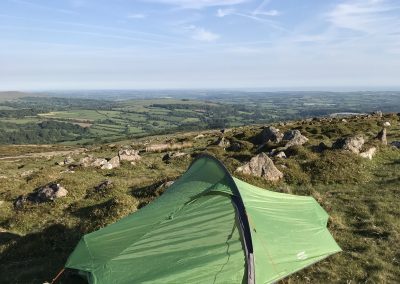 Up at 8 the next morning, to perfect weather and views over the South Hams. Coffee, pack-up, stroll back to the car. A great couple of days in a lovely corner of the moor – never far from a road, but feeling remote, ancient and beautiful.
