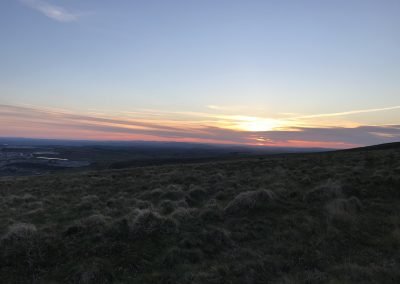 I returned sooner than expected, with a great overnight forecast two days later. So, up from East Rook Gate in the early evening to the settlement and I set up the tent inside the enclosure, trying to decide if I felt spooked or not. A quick meal then up past Penn Beacon to Shell Top to catch a late sunset – the views of two days ago were made even more special by the light gradually fading away.